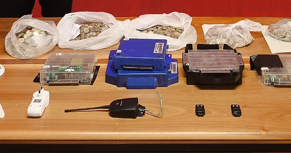 L’operazione dei carabinieri ha portato al sequestro di 6 slot machine, 12 schede madri, 6 antenne, 2 dispositivi di conversione, 4 telecomandi e circa 5.000 euro