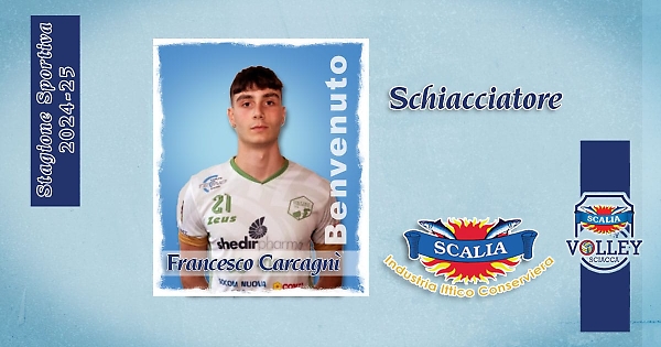 Il primo colpo di mercato arriva dalla serie A. Si tratta di Francesco Carcagnì, schiacciatore posto 4 classe 2004 alto 1 metro e 92 centimetri. Nato a Galatina, in Puglia, lo scorso anno è stato a Sorrento, squadra con cui ha disputato l'ultimo campionato di serie A3 giocando 23 partite. Nel 2018 con la Lube Civitanova ha vinto la “Boy League”, il prestigioso torneo nazionale Under 14 organizzato dalla Lega Nazionale di serie A che raduna i migliori giovanissimi emergenti d'Italia. Si trasferisce quindi a Castellana Grotte, dove vince diversi titoli regionali, fa l'esordio in B e nel 2022 conquista il campionato italiano Under 19. Lo scorso anno l'esperienza campana e ora Sciacca, per una nuova e stimolante esperienza.  Giovane e con tanta voglia di essere protagonista, Francesco non vede l'ora di abbracciare i suoi nuovi compagni siciliani.