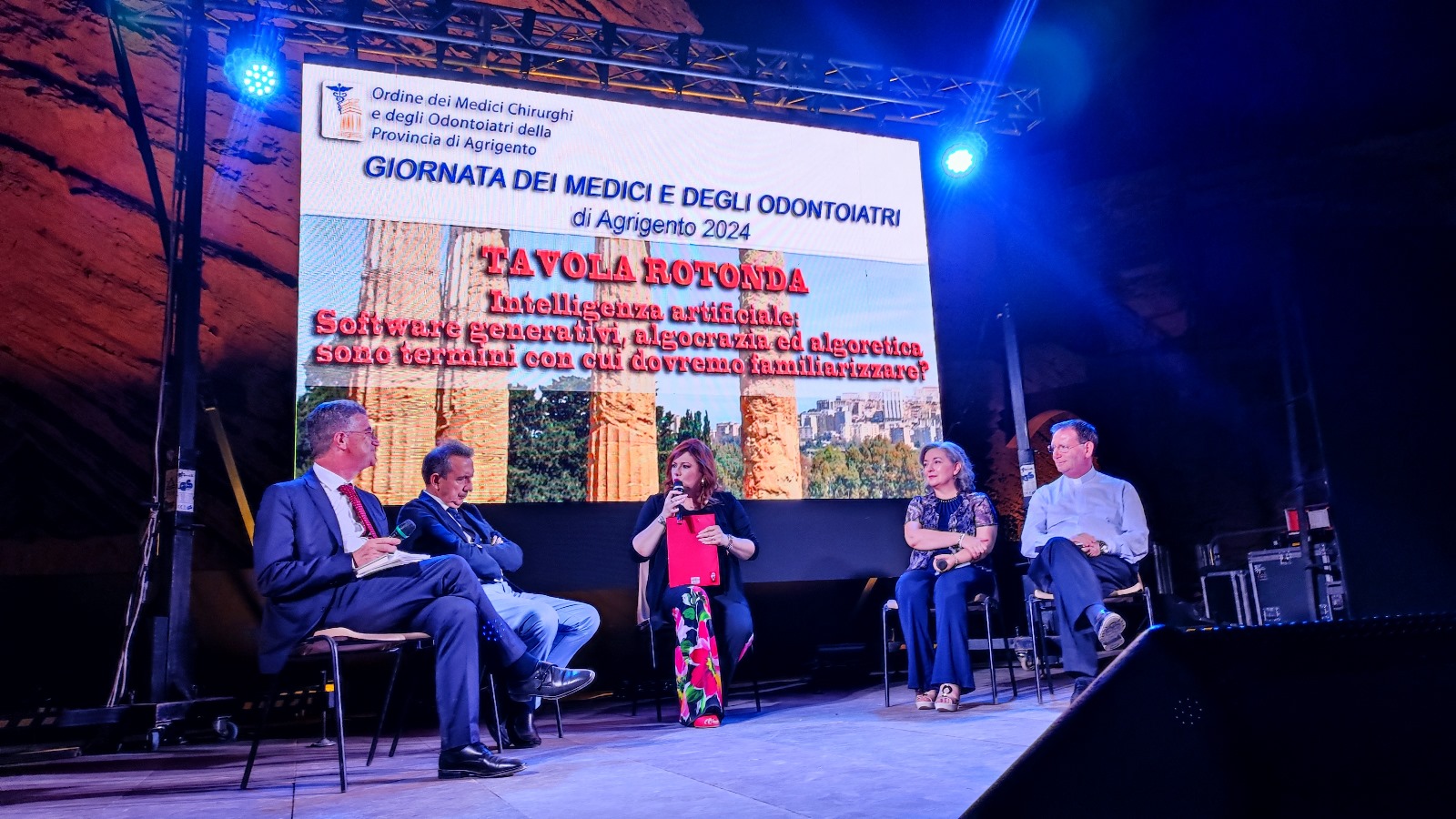 Durante la serata, per la regia amichevole di Franco Capitano, condotta da Simona Carisi e Totò Nocera Bracco e intervallata da momenti musicali a cura di Federica Rotulo, Tom Sinatra e dal Trio Scirocco e dal monologo di Paolo Macedonio, si è tenuta la tavola rotonda sul tema: “Intelligenza artificiale: software generativi, algocrazia e algoretica sono termini con cui dovremmo familiarizzare?”, moderata dalla giornalista Daniela Spalanca, alla quale hanno partecipato Salvatore Casà, odontoiatra; Giovanni D'Ippolito, presidente dell’Omceo di Caltanissetta; don Angelo Chillura, direttore della Biblioteca Lucchesiana; Chiara Ippolito, addetta stampa della Conferenza episcopale siciliana, che ha indotto alla riflessione sull'utilizzo dell'intelligenza artificiale in campo medico e diagnostico. Subito dopo, si sono svolti la cerimonia di consegna delle targhe ai medici che hanno compiuto 50 anni di iscrizione all’Ordine e il Giuramento di Ippocrate dei giovani medici neolaureati e iscritti all’Omceo di Agrigento.