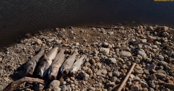 Il fiume Palma, a Palma di Montechiaro, nell’agrigentino è nero e irriconoscibile. Sulla sua riva ci sono decine e decine spigole (anche di 4 o 5 chili) morte. Il disastro è stato documentato, con foto e video, dall’associazione ambientalista MareAmico.