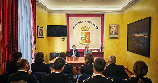 La Polizia di Stato di Agrigento, questa mattina ha ricevuto la visita del prefetto Salvatore Caccamo. Quest'ultimo, accompagnato dal questore Tommaso Palumbo, è stato accolto nella sala “San Michele” da dirigenti e funzionari della Questura. Il questore, dopo un saluto di benvenuto e di ringraziamento, ha confermato la piena collaborazione da parte della Questura per affrontare tutte le sfide che, quotidianamente, impegnano il territorio di Agrigento. Il prefetto Caccamo ha ringraziato i presenti per l’impegno profuso dai singoli dirigenti, i cui risultati sono tangibili ed apprezzati ogni giorno dai cittadini e dalle istituzioni del territorio. Il prefetto ed il questore hanno rivolto un particolare apprezzamento alla sinergia interforze che si è creata nella provincia di Agrigento, nella quale le varie forze di polizia contribuiscono con concordia al mantenimento dell’ordine e della sicurezza pubblica.