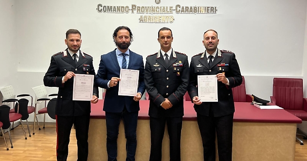 Questa mattina, nella sala conferenze del Comando provinciale carabinieri di Agrigento, il comandante provinciale, colonnello Nicola De Tullio, ha consegnato tre encomi semplici ad altrettanti militari attualmente in servizio in questa provincia, distintisi per brillanti operazioni di polizia giudiziaria condotte durante il loro servizio presso altri comandi territoriali. In particolare, il capitano Marco Massimino, attuale comandante della Compagnia carabinieri di Licata, il maresciallo ordinario Alfredo Lucanto, addetto al Nucleo Investigativo del Comando provinciale carabinieri di Agrigento, e il maresciallo ordinario Roberto Seminerio, addetto alla Stazione carabinieri di Agrigento, sono stati destinatari di encomi semplici concessi rispettivamente dalla Legione Carabinieri Campania e dalla Legione Carabinieri Calabria, per importanti attività investigative svolte nei territori di competenza.