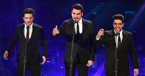 Members of the Italian pop trio Il Volo, Gianluca Ginoble (L), Ignazio Boschetto (C) and Piero Barone (R) perform on stage during the 68th Sanremo Italian Song Festival at the Ariston theatre in Sanremo, Italy, 07 February 2018. The 68th edition of the television song contest runs from 06 to 10 February. ANSA/ETTORE FERRARI