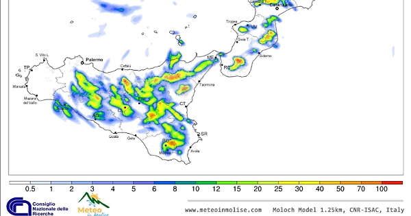 "Ci attendiamo forti temporali - prosegue la comunicazione - su gran parte dell'entroterra siculo con particolare attenzione all'ennese, nisseno, ragusano, siracusano, entroterra del messinese, palermitano. Saranno possibili sconfinamenti lungo la costa tirrenica, specie del messinese, localmente anche su agrigentino e costa ionica".rag