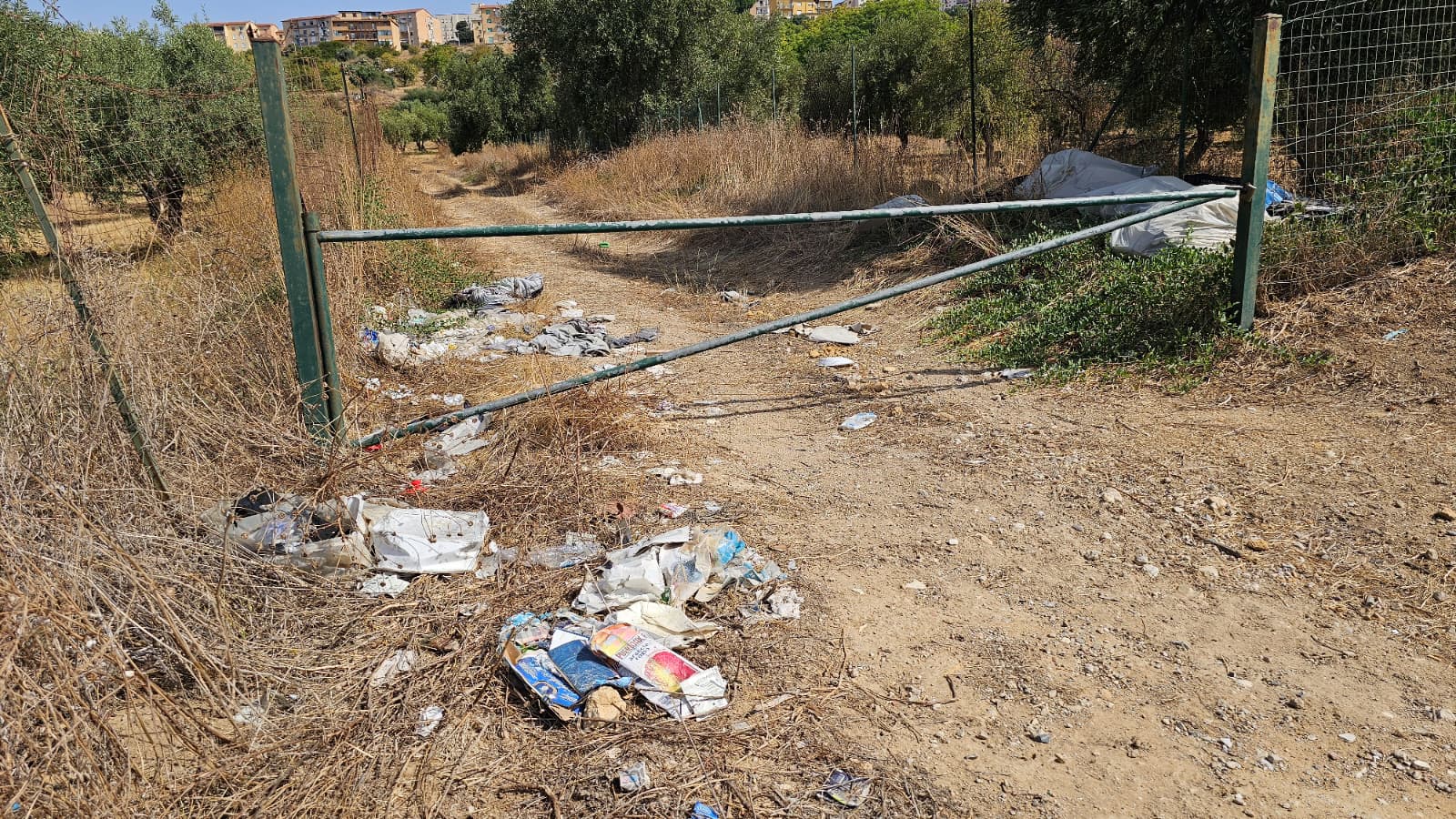 discarica in un’area di verde, con alberi di mandorlo e ulivo, a pochi passi dal museo archeologico "Pietro Griffo"