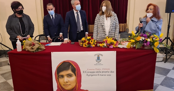 In occasione della giornata Internazionale della donna, presso il Foyer del Teatro Pirandello si svolta una nobile iniziativa in ricordo di Malala Yousafzai, giovane attivista pakistana, premio Nobel per la pace, per l’impegno profuso a favore dei diritti umani e all'Istruzione. L' assessorato alla Pubblica istruzione del Comune di Agrigento, ing Gerlando Principato congiuntamente con il sindaco Francesco Miccichè e con la collaborazione della prof. Antonella Zambuto, ha proposto agli alunni delle secondaria di 1 grado un Premio: “Malala e il Coraggio delle proprie idee”. Durante la manifestazione sono stati proiettati video prodotti dagli alunni che evidenziano l'impegno delle donne nella cultura, nelle scienza, nell’arte e contro ogni forma di sopraffazione Umana e sociale. Presente il Sindaco di Naro, on. Maria Grazia Brandara. presidente Dell' Agorà delle Donne. Presente la moglie del sindaco Antonella Sajeva. Questi i lavori che sono stati proiettati e premiati: I.C. “ESSENETO” (D.S., prof.ssa Brigida Lombardi) , video classe 2^ E, docente Referente, professoressa Daniela Rampello.