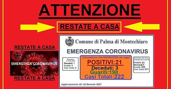 "C'è anche la buona notizia - dice il primo cittadino - della guarigione di due soggetti. Invito i miei concittadini a rimanere a casa ed uscire soltanto per giuste motivazioni. In totale, al momento, abbiamo ventuno casi, ma se non rispettiamo i Dpcm e le restrizioni che anch'io ho inasprito, i positivi potrebbero aumentare sensibilmente".