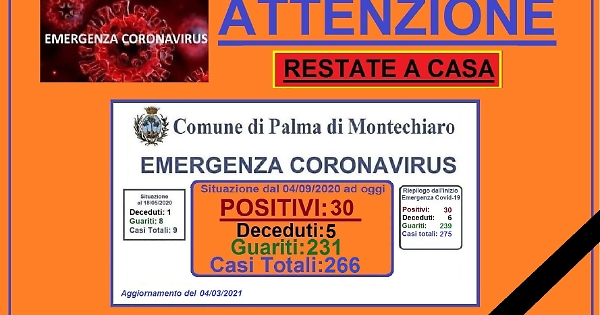 L'Asp di Agrigento ha comunica la positività e, purtroppo un nuovo decesso per Covid 19, il secondo in 17 giorni, a Palma di Montechiaro.