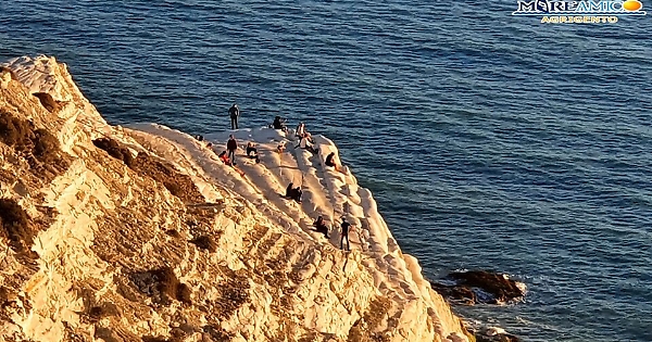 La Scala dei Turchi dovrebbe essere off limits per i visitatori visto che è anche transennata dopo gli ultimi crolli. Ma la gente se ne frega e, giornalmente, infatti, si notano decine e decine di persone lungo la marna bianca. L'associazione ambientalista, Mareamico, che tiene sempre d'occhio uno dei siti più belli della penisola, nel pomeriggio di oggi, intorno alle 17,30, ha immortalato diverse persone che se ne stavano tranquillamente a passeggiare lungo la Scala dei Turchi.