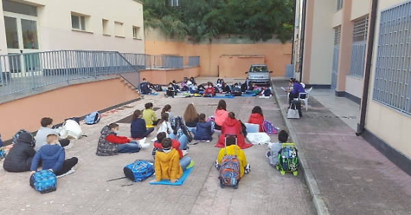 Lezione all'aperto per alcuni studenti dell'Istituto comprensivo "Esseneto" di Agrigento