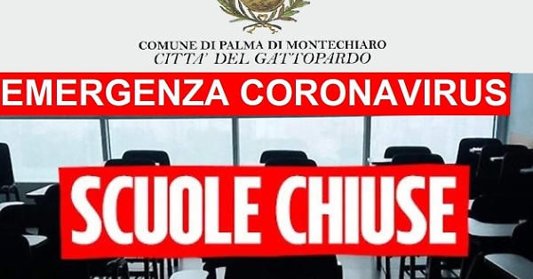 Da domani e fino al 5 novembre prossimo, niente attività didattica negli istituti comprensivi di Palma di Montechiaro. Lo ha disposto con propria ordinanza, questa sera, il sindaco, Stefano Castellino. Quest'ultimo, ha deciso di far sanificare tutti gli istituti scolastici della città del Gattopardo.