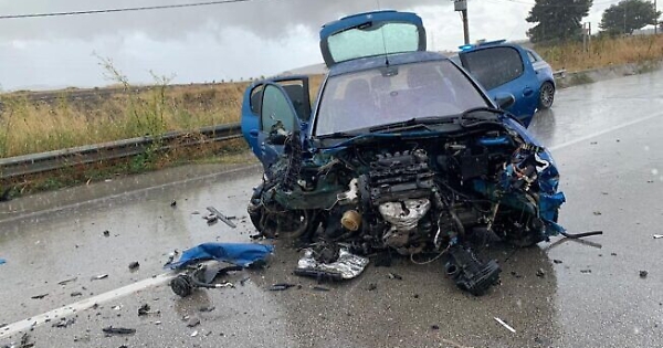 La Peugeot addirittura ha perso pezzi meccanici lungo l’arteria. Sul posto le ambulanze, e la polizia di Stato.
