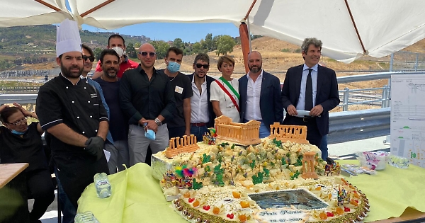 Il pastry chef agrigentino Giovanni Mangione, in collaborazione con altri due colleghi pasticcieri Francesco Plano, e Gaetano Rota, ha realizzato una mega torta del peso di 70 chili, in occasione dell’inaugurazione del ponte Petrusa.