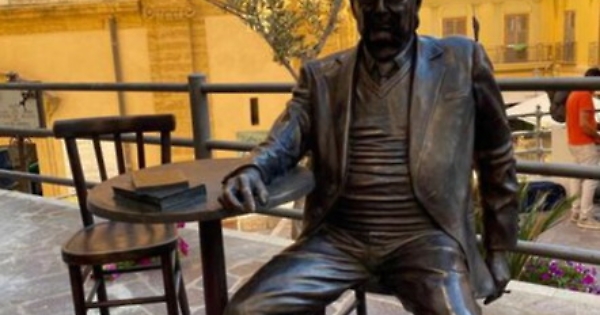 Agrigento, Camilleri seduto al tavolino di un caffè: statua nel "salotto buono" della città