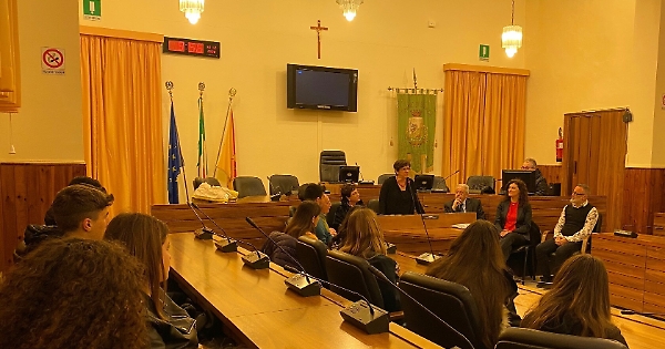 L’incontro si è svolto al Palazzo Municipale, nell’aula consiliare “Falcone e Borsellino”. Presenti per la delegazione saccense, il dirigente del Liceo Scientifico “Fermi” Giuseppa Diliberto e gli insegnanti referenti dell’iniziativa Alida Alessi e Mario La Bella assieme agli studenti della III B impegnati nelle attività del progetto “Teatro filosofico, ‘iniziamo’ dalla natura: Demetra e Persefone da Enna a Eleusi”.