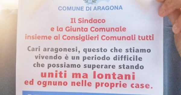 Ad Aragona è stato realizzato un manifesto, da una idea nata da Raimondo Collura, dove si legge: "Uniti ma lontani ed ognuno nelle proprie case".