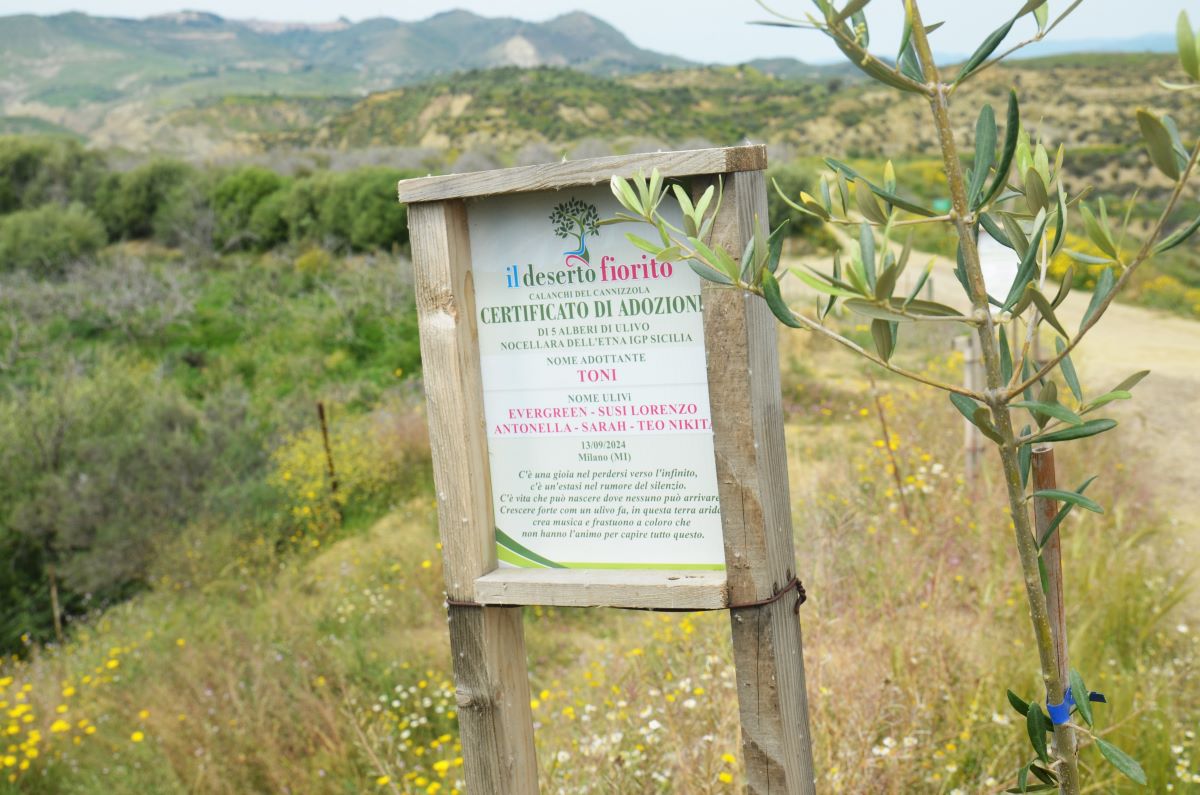 «È nato un anno fa come presidio del territorio. Le persone non bastano. Le terre “vuote” diventano preda di personaggi senza scrupoli. Noi abbiamo l’unico agrumeto che resiste sui Calanchi del Cannizzola e dobbiamo continuare a piantare alberi affinché questi territori mantengano la loro originalità. Duemila anni fa qui intorno era tutto bosco, adesso è diventato come sabbia del mare a causa dei cambiamenti climatici. Il disboscamento e l’abbandono delle campagne hanno fatto il resto, quindi ripiantare ulivi per noi è stato quasi una necessità. Più alberi ci sono, più il territorio è “tutelato” sotto tutti i punti di vista. Non abbiamo cancelli nella nostra proprietà e dobbiamo fare i conti con i danni causati dagli animali lasciati volutamente liberi di distruggere le coltivazioni. Più alberi piantiamo, più strumenti avremo per denunciare un danno. Contemporaneamente con il progetto “Adotta un ulivo” diamo al visitatore la possibilità di chiamare una nuova pianta con il suo nome. Lo stesso anno dell’adozione gli invieremo l’olio prodotto dagli ulivi già in produzione in attesa che dopo 4-5 anni andrà in fruttificazione proprio la pianta adottata. In più contribuiamo ad abbassare i livelli di CO2».