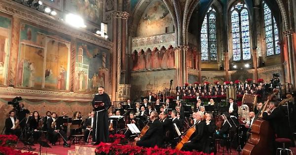 ASSISI (PERUGIA), 16 DIC - Paolo Fresu alla tromba e il soprano Sumi Jo sono stati i principali artefici della 32/a edizione del Concerto di Natale della Basilica di San Francesco d'Assisi, diretto dal maestro William Eddins. Insieme agli artisti, anche l'Orchestra sinfonica nazionale della Rai, il coro di voci bianche 'I piccoli musici', diretto dal maestro Mario Mora, e il coro maschile del 'Coro Maghini' diretto dal maestro Elena Camoletto. Il concerto verrà trasmesso il 25 dicembre alle 12.30 su Rai1, dopo la benedizione 'Urbi et Orbi' di Papa Francesco. Presentando il tradizionale appuntamento musicale, il custode del Sacro Convento, padre Mauro Gambetti, ha annunciato che i frati di Assisi hanno deciso di donare la Lampada della pace di San Francesco alla cancelliera tedesca Angela Merkel, che "ha costruito ponti invece di alzare i muri".