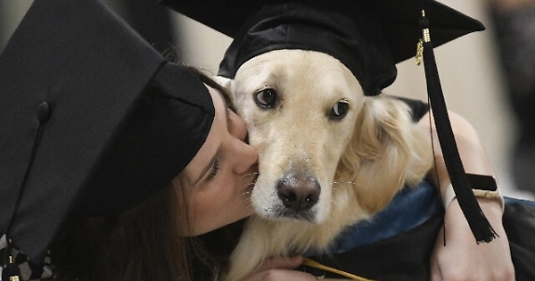 WASHINGTON, 18 DIC - Laurea onoraria, con tanto di tradizionale cappello nero, per Griffin, un golden retriever di 4 anni che ha assistito la venticinquenne Brittany Hawley nel suo percorso di studi per un master in terapia occupazionale alla Clarkson University di New York. Alla cerimonia era al suo fianco per ricevere un diploma ad honorem, per aver "dimostrato uno sforzo straordinario, un impegno costante e una dedizione totale per il benessere e il successo dello studente, si legge nelle motivazioni del riconoscimento. "Ho insistito perche' si laureasse anche lui sin dal primo giorno, ha fatto tutto quello che ho fatto io", ha spiegato la ragazza, che usa una sedia a rotelle per spostarsi e soffre di dolori cronici. Il cane la aiuta ad aprire le porte, ad accendere le luci e le porta gli oggetti che lei gli indica con un puntatore laser. Ma la cosa più importante è la vicinanza e il conforto che le offre ogni giorno tra dolori senza tregua, che causano depressione e ansia.