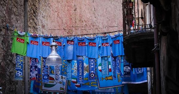 NAPOLI, 8 APR - Nei vicoli di Napoli non si perde la speranza per lo scudetto, men che meno di fronte al convento delle suore di clausura delle 'Trentatrè'. Nel centro antico, in Via Pisanelli, ad un filo agganciato, da un lato, al muro del convento e, dall'altro, alla facciata di un edificio, sono appese ad asciugare 11 magliette, uguali a quelle dei calciatori azzurri, le sciarpe e le bandiere. Tra la curiosità di turisti, abitanti della zona e anche di due suore dell'ordine di Madre Teresa di Calcutta che passano nella strada, non si può fare a meno di notare l'attaccamento dei tifosi alla propria squadra. E non è un problema se dall'altro capo del filo c'è un muro inviolabile, quello del convento delle Trentatrè e della Chiesa di Santa Maria di Gerusalemme. ''Chissà se le suore lo sanno...'' commenta divertito un turista che si affretta a fotografare i 'panni stesi'.