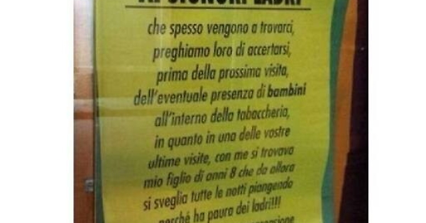 Paternò, il cartello del tabaccaio «Signori ladri, state attenti ai bambini»