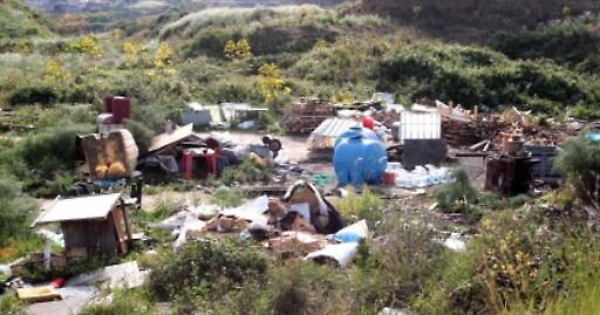Le tonnellate di materiale di risulta sono state accatastate nella parte nord. Pochi metri più in là, dietro alle colline, sono sistemati vecchi mobili di legno, pezzi di auto di ogni tipo e parabrezza: sembra quasi un concessionario dell’usato.