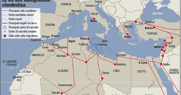Da qui c’è il tentativo di raggiungere la Bulgaria o la Grecia, anche via mare, anche perché le isole greche sono vicinissime alle coste turche. Ma c’è anche chi prova a raggiungere le coste italiane, soprattutto quelle calabresi, dopo avere superato Creta. Fino a qualche tempo fa i profughi dei Paesi a sud del Sahara tentavano anche la via della Spagna, o cercando di arrivare sulle isole Canarie, o tentando di raggiungere le due enclavi spagnole sulle coste marocchine, Ceuta e Melilla. Ma gli accordi tra Madrid e Rabat ed anche delle recinzioni invalicabili hanno diminuito drasticamente, da lì, questi flussi.