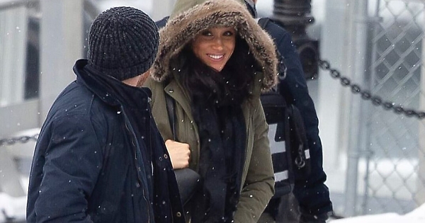 Meghan si è presentata con un look molto sportivo e soprattutto molto coperta dal momento che in Canada c'è la neve. Ma sicuramente per lei, il freddo è l'ultimo dei problemi.