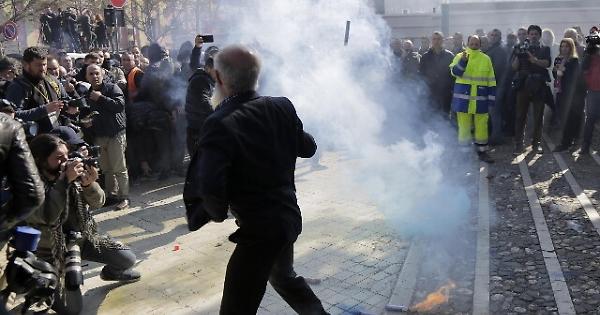 TIRANA, 26 FEB - Violenti scontri a Tirana davanti al Parlamento albanese: i manifestanti hanno provato a sfondare un cordone della polizia e gli agenti hanno lanciato i lacrimogeni. Le centinaia di persone che stanno protestando contro il governo hanno risposto, a loro volta, con il tiro di sassi. Subito dopo sono state schierate le unità antisommossa.