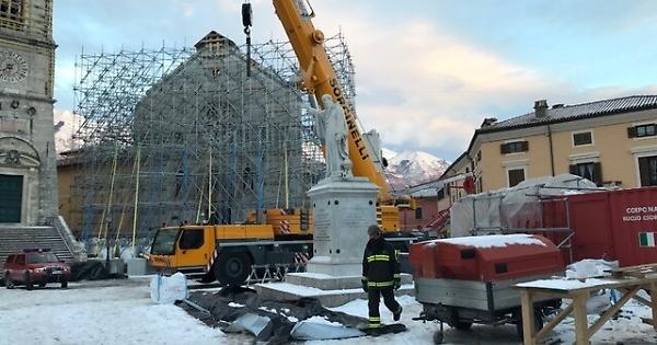 NORCIA (PERUGIA), 9 GEN - Al via a Norcia le operazioni per il recupero delle macerie della Basilica di San Benedetto crollata per il terremoto del 30 ottobre. Con le prime fasi organizzative è scatta la delicata operazione di rimozione delle pietre e degli altri resti. Sarà un gruppo di restauratori dell'Istituto superiore per la conservazione ed il restauro del Ministero dei Beni culturali a guidare i lavori, coadiuvato da volontari e dai vigili del fuoco. "Si inizierà pulendo le macerie dalla neve per poi fare un lavoro di selezione sulle macerie stesse" ha spiegato all'ANSA Marica Mercalli, soprintendente per le Belle arti dell'Umbria. "I resti che verranno recuperati - ha aggiunto - saranno poi selezionati e verranno dapprima adagiati in piazza San Benedetto, per poi essere conservati all'interno di container in una zona ancora da individuare nei pressi di Norcia". Quelli ritenuti di particolare pregio e adatti ad essere riutilizzati, verranno poi impiegate nella ricostruzione della stessa Basilica.