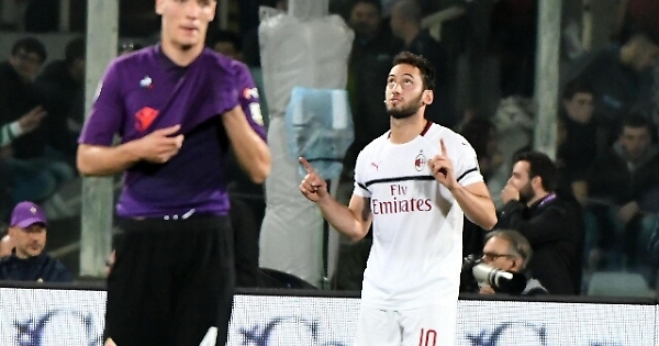 ROMA, 11 MAG - Il Milan vince 1-0 a Firenze nell'ultimo anticipo della 36/a giornata di serie A, conquistando il secondo successo consecutivo e blindando almeno per un'altra giornata il quinto posto in classifica. I rossoneri sono andati in vantaggio al 36' del primo tempo con Calhanoglu, al secondo centro stagionale, riuscendo poi a difendere l'importante vittoria contro una squadra viola che ha fatto vedere qualcosa solo nella ripresa. E' la quarta sconfitta consecutiva in campionato per l'11 di Montella e la partita si è chiusa con una nuova contestazione dei tifosi.