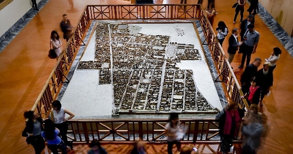 NAPOLI, 19 MAG - Il plastico ottocentesco di Pompei, uno dei simboli del Museo Archeologico Nazionale di Napoli, si racconta da oggi al pubblico grazie alla tecnologia: con il video "Pompei: il plastico e la città. Orientarsi fra spazio e tempo" parte il riallestimento della sala XCVI del MANN che ospita il celebre modello di sughero fatto realizzare da Giuseppe Fiorelli nel 1861. Uno schermo da 85 pollici (inserito al centro della parete sulla quale è dipinto un Vesuvio con evidenziate le dimensioni che aveva prima dell'eruzione), proietta un video di sette minuti prodotto da Altair4 Multimedia. "È il primo passo del MANN verso la tecnologia - spiega il direttore del Museo Paolo Giulierini - che permetterà, progressivamente, di leggere in maniera completa le nostre collezioni".