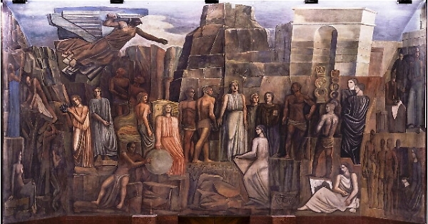 ROMA, 23 NOV - Sopravvissuto alla carta da parati con cui fu ricoperto nell'immediato dopoguerra e alla successiva estesa ridipintura che ne cancellò i simboli del regime ma anche ogni traccia di uno stile eccelso, il genio di Mario Sironi riemerge grazie a un complesso intervento di restauro nel 'L'Italia tra le Arti e le Scienze', grandioso dipinto murale che il pittore, incaricato dal Duce in persona, realizzò in soli due mesi, nel 1933, nell'Aula Magna del Rettorato della Sapienza. Riportato al suo splendore dal cauto e paziente lavoro dei tecnici dell'Istituto Superiore Centrale per il Restauro il dipinto è stato svelato, alla presenza del Capo dello Stato Sergio Mattarella e del nipote dell'artista Andrea Sironi Strauβwald, nel corso di una cerimonia in onore degli 80 anni della Città universitaria romana. Al restauro del murale di Sironi la Sapienza dedica anche una mostra ("Sironi svelato. Il restauro del murale della Sapienza") che si può visitare fino al 21/1/2018 nel Museo laboratorio di Arte contemporanea