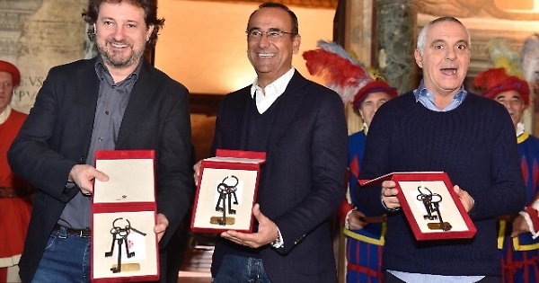 FIRENZE, 14 NOV - Pieraccioni e Panariello insieme a Carlo Conti nella conduzione del Festival di Sanremo? "No: è una bellissima idea, ma fa parte del totofestival che c'e' in questo periodo: Giorgio e Leonardo ci sono già stati lo scorso anno, stiamo già facendo un tour insieme. Non posso mica sopportarli sempre…". Così Conti ha risposto ai cronisti che gli chiedevano del 'rumor', parlando oggi a Firenze dove, insieme proprio a Pieraccioni e Panariello, ha ricevuto dal sindaco Dario Nardella le 'Chiavi della città' come "ambasciatori di Firenze e della fiorentinità". A chi gli chiedeva quali saranno le conduttrici, Conti ha poi risposto che "quella è l'ultima cosa che si sceglie: ora ci concentriamo sulla serata in diretta di Raiuno del 12 dicembre, quando renderemo noti i nomi degli 8 giovani in gara e dei 20 big".