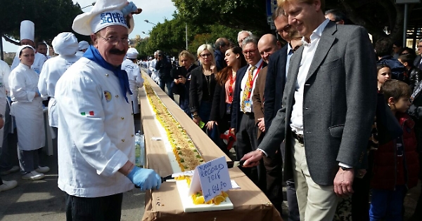 AGRIGENTO  -  «Con una torta lunga oltre 600 metri e pesante tre tonnellate, Agrigento batte il guinness mondiale del dolce più lungo». A darne notizia è il sindaco della città dei Templi, Lillo Firetto, che ha tagliato la prima fetta. «La torta di frutta mandorle e crema - spiega - misura esattamente 601,20 metri ed è stata realizzata da 126 pasticceri guidati dal capo pasticcere Giulio Roberto e dal figlio Carmelo». L’iniziativa rientra nell’ambito delle manifestazioni della sacra del mandorlo in fiore 2016 che proseguiranno fino al 13 marzo.  «Da oggi  - osserva Firetto - possiamo dire che Agrigento è la città più dolce del mondo».