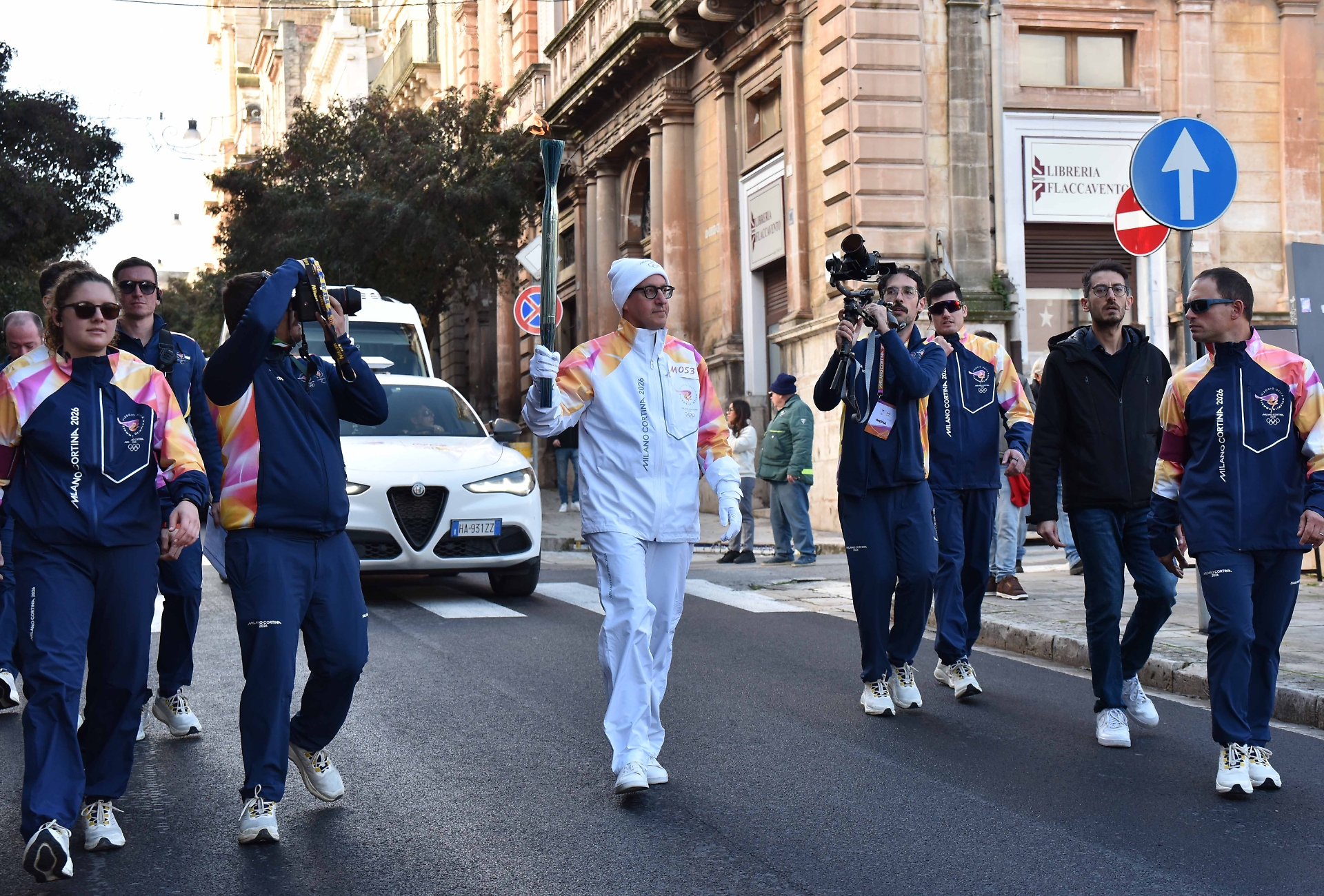 Alle 13 il corteo ha attraversato la città, con partenza da viale Europa e transito lungo corso Italia fino al sagrato della cattedrale, dove i tedofori hanno effettuato il tradizionale scambio della fiaccola.