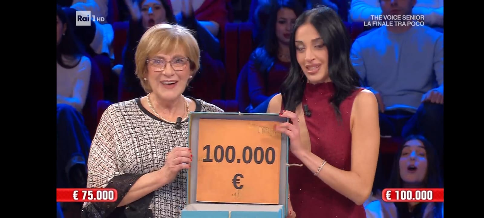 La partita Giulia Scicolone, 29 anni fresca di laurea, l'ha giocata con a fianco la mamma Elena e nella scelta dei numeri dei pacchi da chiamare ha fatto riferimento più volte alle date di nascita dei nonni. Il suo pacco, il 5 — il numero del giorno di nascita del nonno Rosario — lo ha ottenuto con un cambio e lo ha mantenuto fino alla fine.