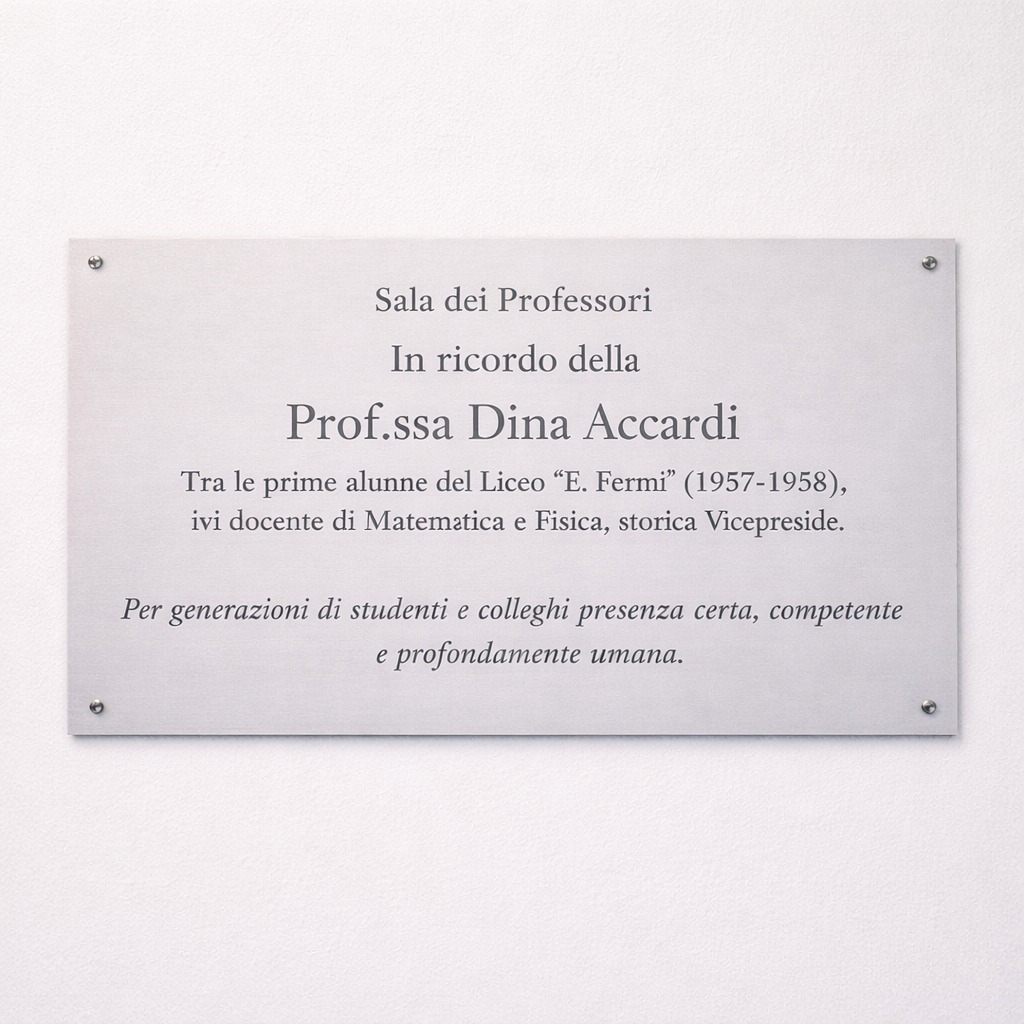 Ieri mattina il liceo scientifico “Enrico Fermi” di Ragusa ha reso omaggio alla professoressa Dina Accardi, docente di Matematica e Fisica che, grazie alla sua passione per l’insegnamento, è stata un punto di riferimento per studenti e studentesse, corpo docente e dirigenza. Donna brillante, dotata di grandi competenze tecniche e, soprattutto, di profonda umanità, ha sempre operato nell’interesse delle nuove generazioni. Fu tra le prime alunne a frequentare il Fermi nell’anno scolastico 1957-1958. Alla cerimonia erano presenti familari, amici e numerosi ex allievi, riuniti per intitolare a Dina Accardi la sala professori dell’istituto. Con forza e convinzione, la docente ha lavorato all’interno del Fermi per ispirare e formare intere generazioni, trasmettendo loro l’amore per la conoscenza e il desiderio di incidere positivamente nel mondo.