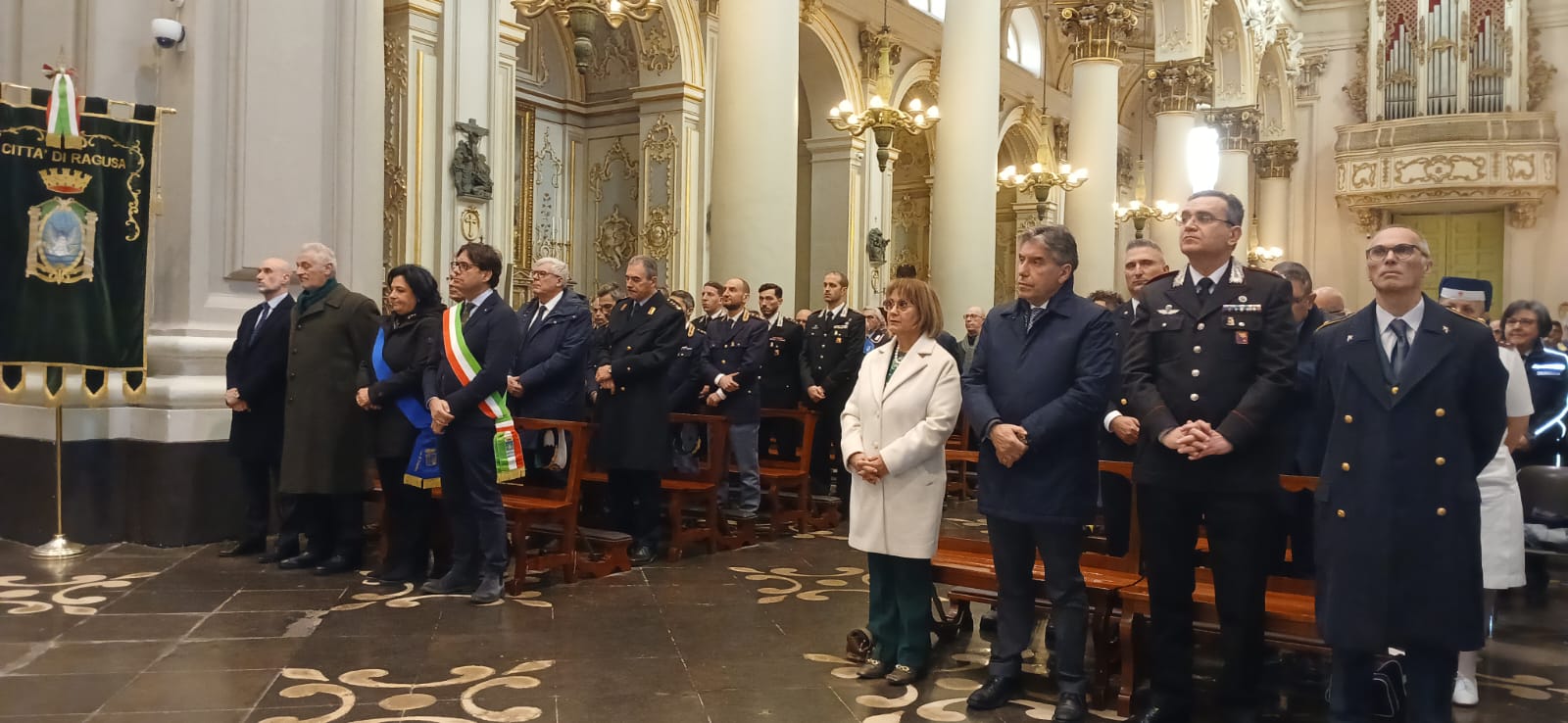 La funzione è stata presieduta dal vescovo di Ragusa, monsignor Giuseppe La Placa, e concelebrata da don Giuseppe Ramondazzo, alla presenza delle principali autorità cittadine e provinciali. In prima fila il prefetto Tania Giallongo, insieme ai rappresentanti della magistratura, delle amministrazioni locali e dei vertici delle forze dell’ordine.