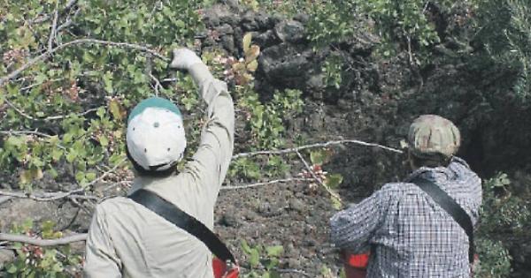 Centinaia di operai impegnati nella raccolta del pistacchio che ha “colonizzato” le pendici del vulcano