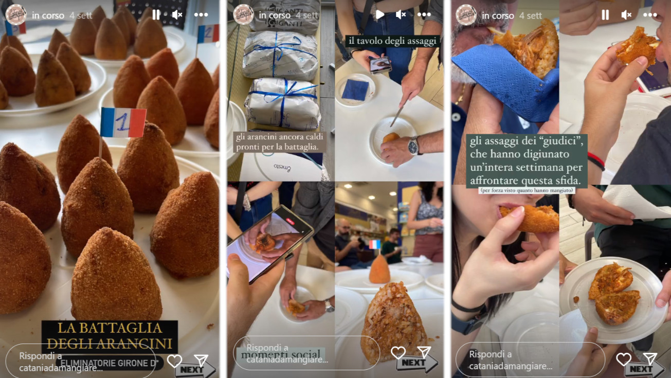 L'iniziativa è della pagina Instagram “Catania da mangiare” che ha lanciato la "Battaglia degli arancini", una sfida nata sui social ma che è degna dei migliori talent show culinari di successo in televisione. Si tratta infatti di una vera e propria gara che vede impegnati 24 locali tra bar, gastronomie e arancinerie delle città etnea in una sfida a colpi di arancini al ragù.