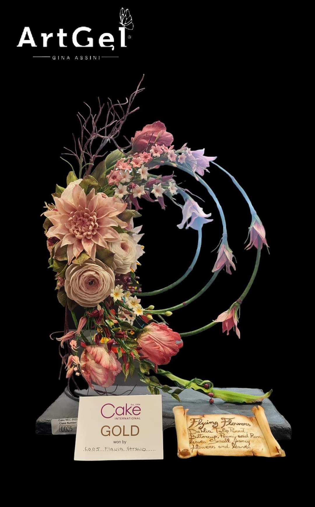 La vittoria l’ha ottenuta grazie alla realizzazione dell’opera: “gravity” ossia un’opera che dà l’illusione di essere sospesa in aria e si intitola “Fliyng flowers“ ( fiori volanti). Una composizione di dalie, ranuncoli e tulipani parriot sapientemente mescolati a una miriade di piccoli fiori di campo e foglie che appaiono come un vortice di fiori svolazzanti. Creativa, talentuosa, dipinge e modella da una vita, l’arte è nel suo dna, Flavia Stroscio si è laureata all’Accademia di Belle arti.