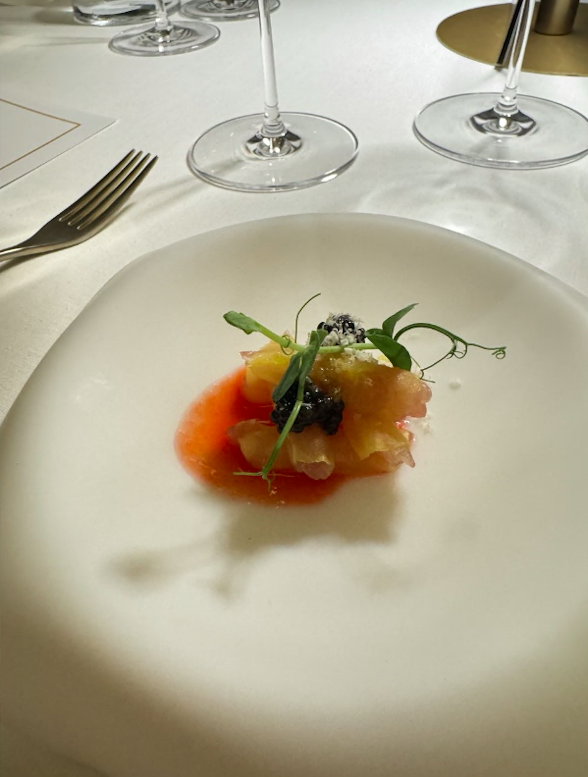 La serata ha avuto al centro un menu inedito firmato dallo chef stellato Carmelo Trentacosti, ideato per valorizzare le molteplici espressioni del caviale Calvisius.