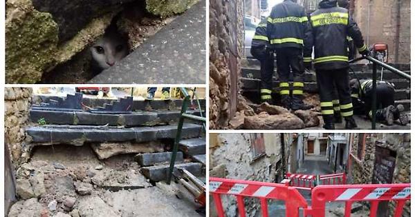 Il micio forse attratto da qualcosa, ha raggiunto una scala dissestata, già segnalata dai residenti al Comune, si è infilato tra i gradini e non è più riuscito a uscirne fuori. La padrona, disperata, ha contattato i vigili del fuoco che, impegnati in diversi interventi per via del maltempo, sono arrivati non appena si è liberata la prima squadra.