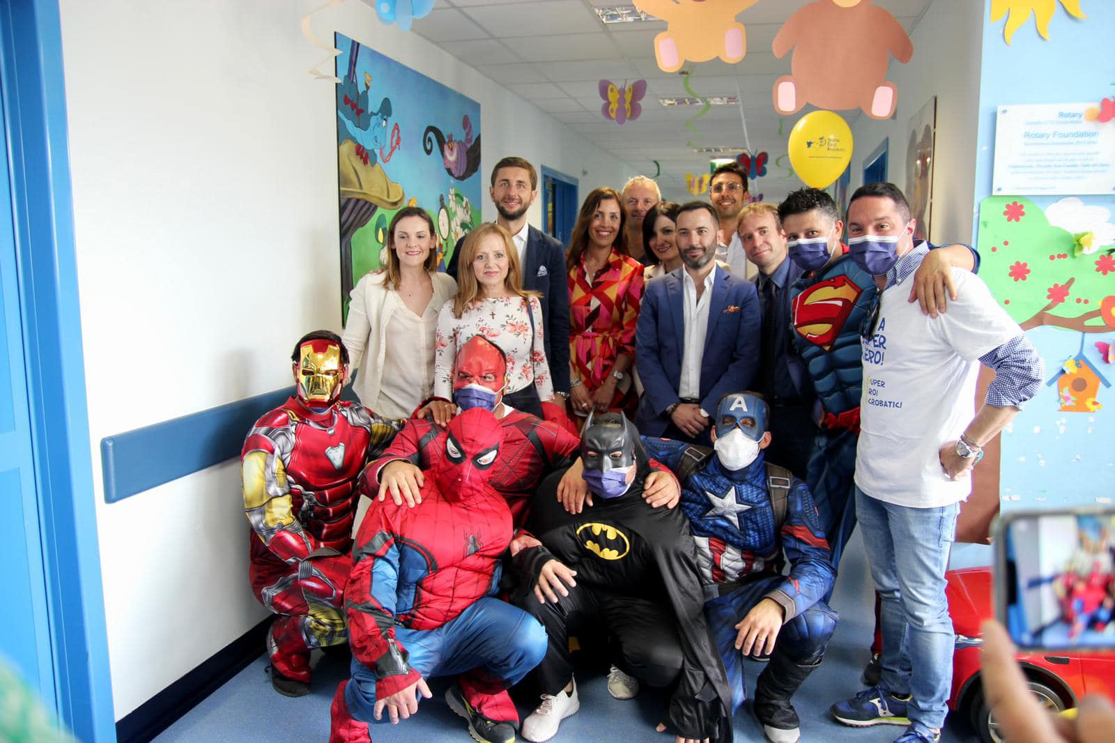 Vestiti con gli abiti dei Supereroi preferiti dai bambini, i componenti dell’associazione «Sea-SuperEroiAcrobatici" hanno incontrato i bimbi del reparto di Pediatria