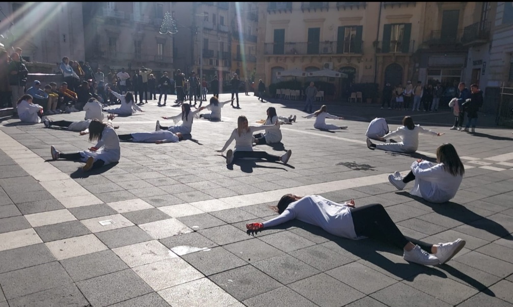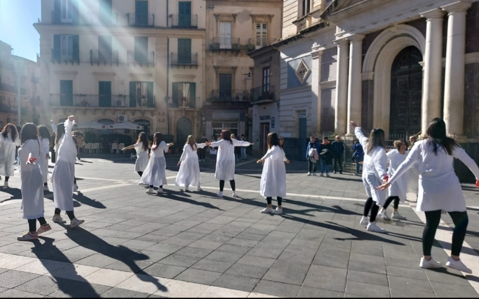 La prima fase si è svolta in piazza Garibaldi dove un gruppo nutrito di alunne dell’indirizzo Odontotecnico e Servizi per la Sanità e per l'Assistenza Sociale si è esibito in un flash mob sulle note della canzone di Nada dal titolo “Ballata triste” che racconta di una giornata apparentemente normale in una famiglia apparentemente normale, che finisce in tragedia. L’organizzazione di questa esibizione è stata curata dai professori Roberto Martorana e Loredana Ferraro.