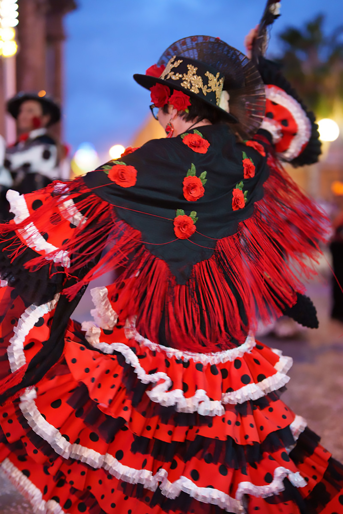Le grandi sfilate del Concorso in Maschera sono il momento più atteso dell’intera manifestazione, trasformando il paese in un immenso teatro a cielo aperto. In queste date, il paese si anima con gruppi mascherati, carri allegorici e coreografie spettacolari che attraversano le vie principali in un tripudio di musica, colori e fantasia.