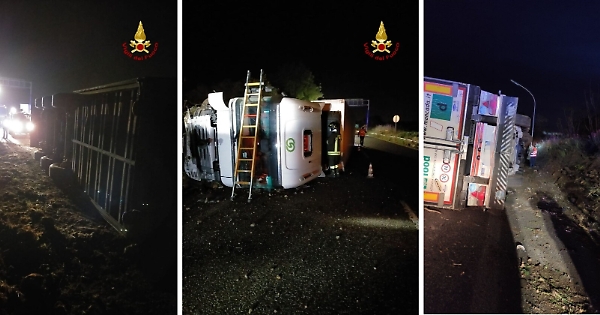 Rallentamenti nella notte e fino alla prima mattinata lungo l'autostrada Catania Messina, in direzione Messina nel comune di Valverde per un incidente ad un mezzo pesante. Sul posto sono giunti i vigili del fuoco del Comando Provinciale di Catania che hanno delimitato l'area e messo in sicurezza il mezzo pesante carico di prodotti ortofrutticoli. Il conducente è uscito illeso ed autonomamente dalla cabina. Sul posto anche personale della Polizia Stradale e del Consorzio Autostrade Siciliane.