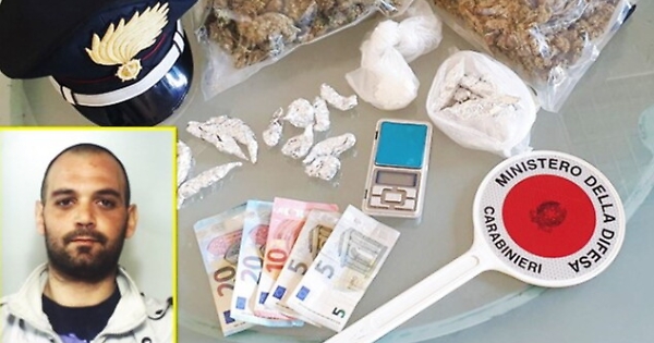 Tanto era sufficiente ai militari che ritornati a Misterbianco hanno atteso l’arrivo del Guarnaccia, giunto poi a bordo della sua Fiat 500, il quale ha finto di non essere il proprietario dell’immobile cercando così di scansare l’imminente guaio giudiziario, ma la presenza delle chiavi all’interno della sua autovettura lo hanno immediatamente smentito e posto di fronte alle sue responsabilità perché, a seguito della perquisizione effettuata, i militari hanno trovato ben 800 grammi di marijuana, 26 dosi già confezionate per la vendita al minuto, circa 30 grammi di cocaina, un bilancino di precisione, una somma di 60 euro ritenuta provento dell’attività di spaccio e, soprattutto, un foglio con la maniacale annotazione delle movimentazioni inerenti la vendita delle sostanze stupefacenti.