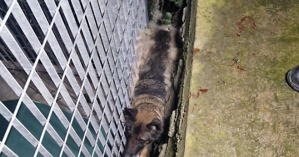 Il cane aveva difficoltà a respirare per lo spazio angusto in cui si trovava. Per recuperarlo si è reso necessario smontare il pannello della recinzione in ferro per poterlo raggiungere, imbracare e trarlo in salvo. Fero, cane da ricerca tra le macerie in «pensione» per la sua età, è stato riabbracciato dal suo proprietario, dopo aver ricevuto le «coccole» di tutta la squadra dei Vigili del fuoco intervenuta.